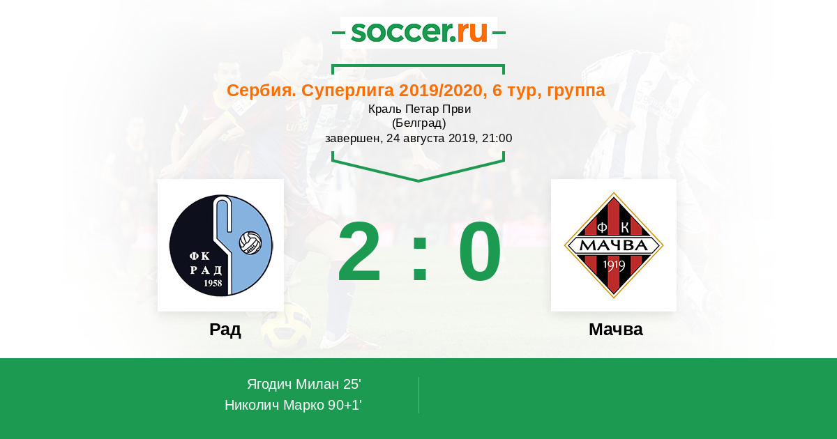 25' (1:0) Ягодич Милан (16) (B. Milosevic)