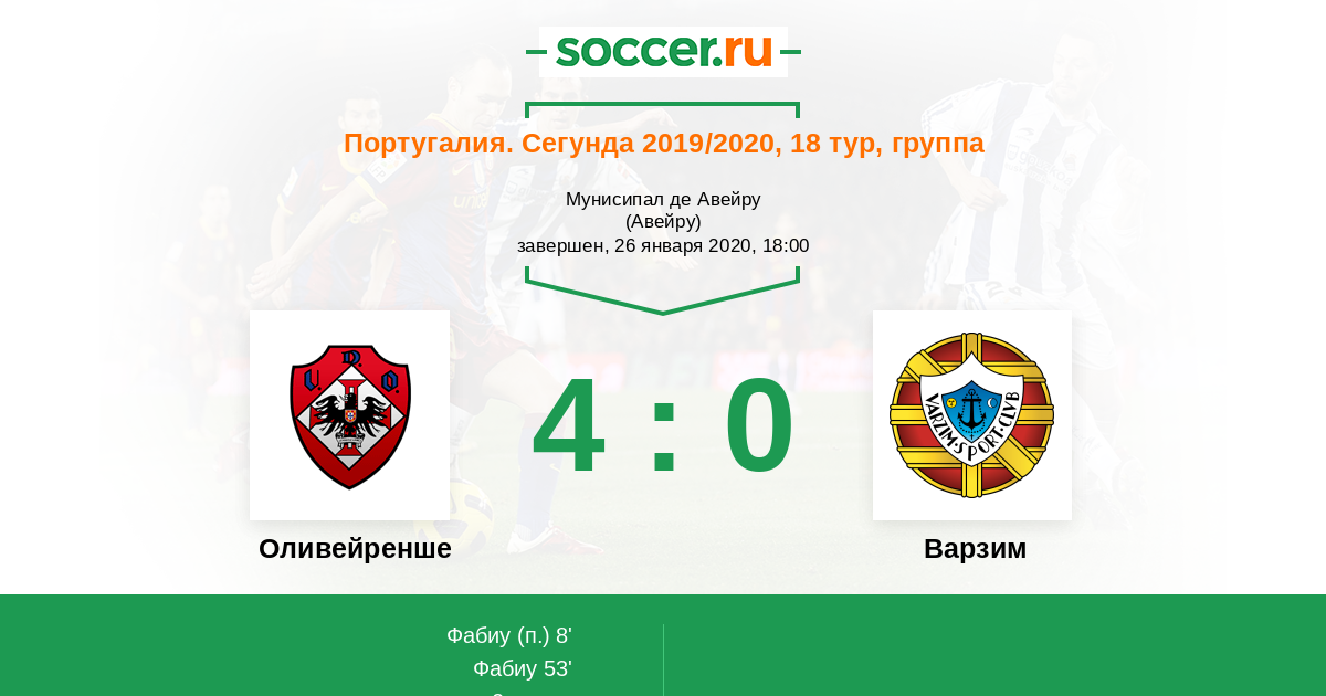 53' (2:0) Фабиу (27)