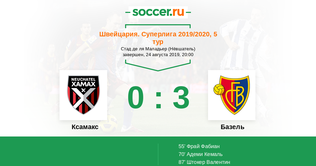 55' (0:1) Фрай Фабиан (20) (Буа Кевин (33))