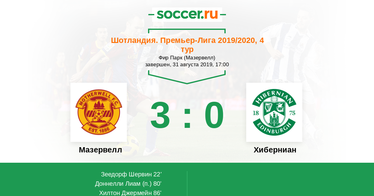 22' (1:0) Зеедорф Шервин (11) (Доннелли Лиам (22))