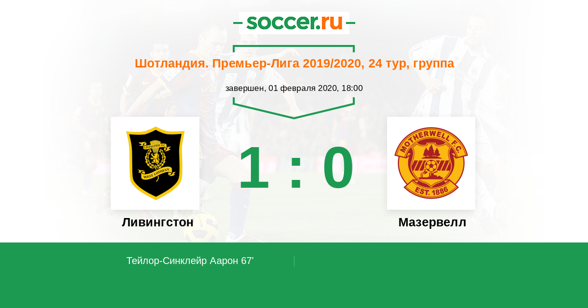 67' (1:0) Тейлор-Синклейр Аарон (29) (Браун Кьярон (3))