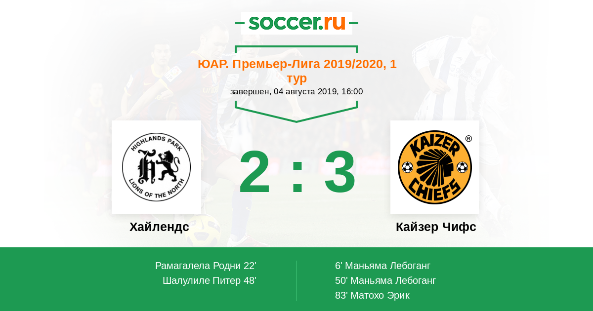 22' (1:1) Рамагалела Родни (13) (Шалулиле Питер (38))