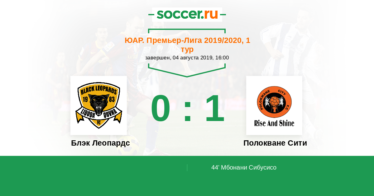 44' (0:1) Мбонани Сибусисо (22) (Малулеке Джабулани (8))