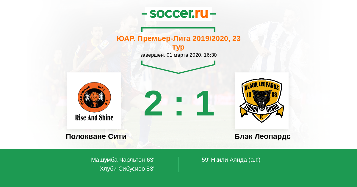 Запасные: 7 Боой Бонгиле (с 53'), 11 Хлуби Сибусисо (с 69'), 13 Маласела Кабело (с 76'), 1 Чигова Джордж, 23 Хлатшвайо Сиселокуле, 6 Чауке Темба, 12 Муяба Худа