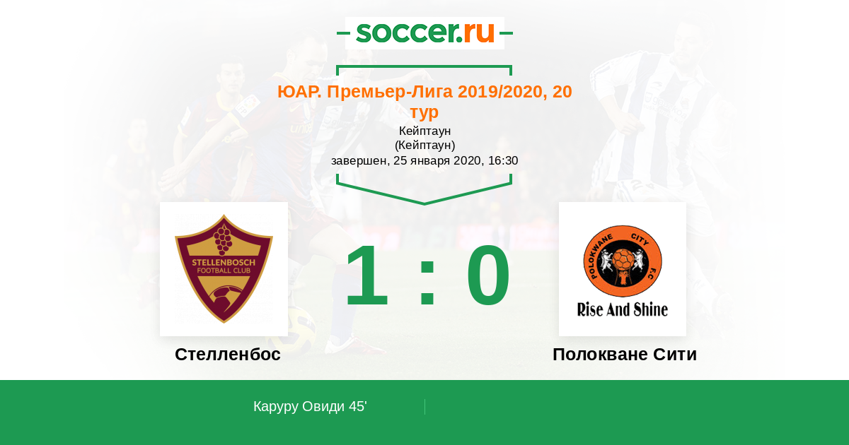 Запасные: 15 Бергман Кристофер (с 64'), 6 Морул Джэррод (с 75'), 3 Ндлову Звелету (с 85'), 31 Де Йонг Бой, 18 Скелем Лелету, 7 ван Руйен Дин Дэвид, 20 Робертсон Алан