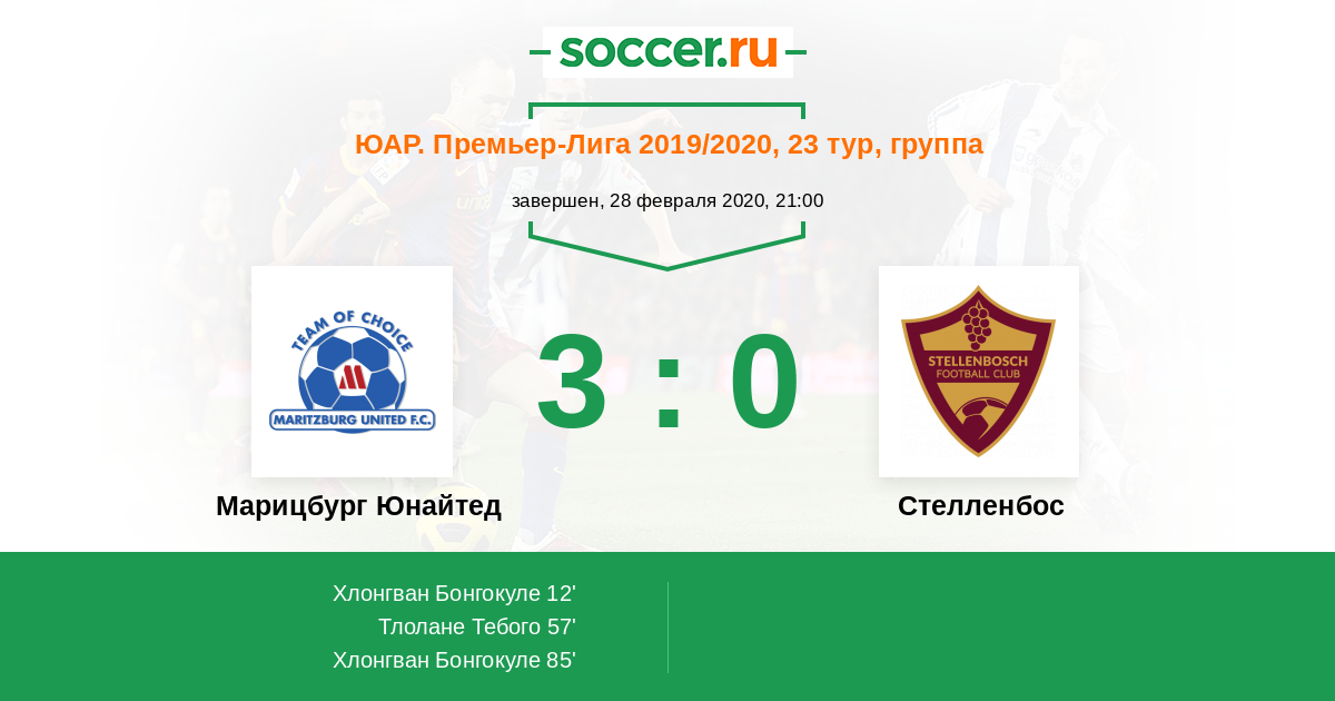12' (1:0) Хлонгван Бонгокуле (21) (Кутумела Табисо (7))