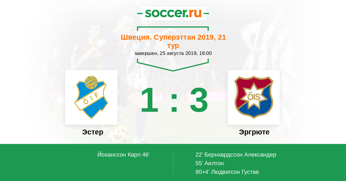 22' (0:1) Бернхардссон Александер (17) (A. Almeida)