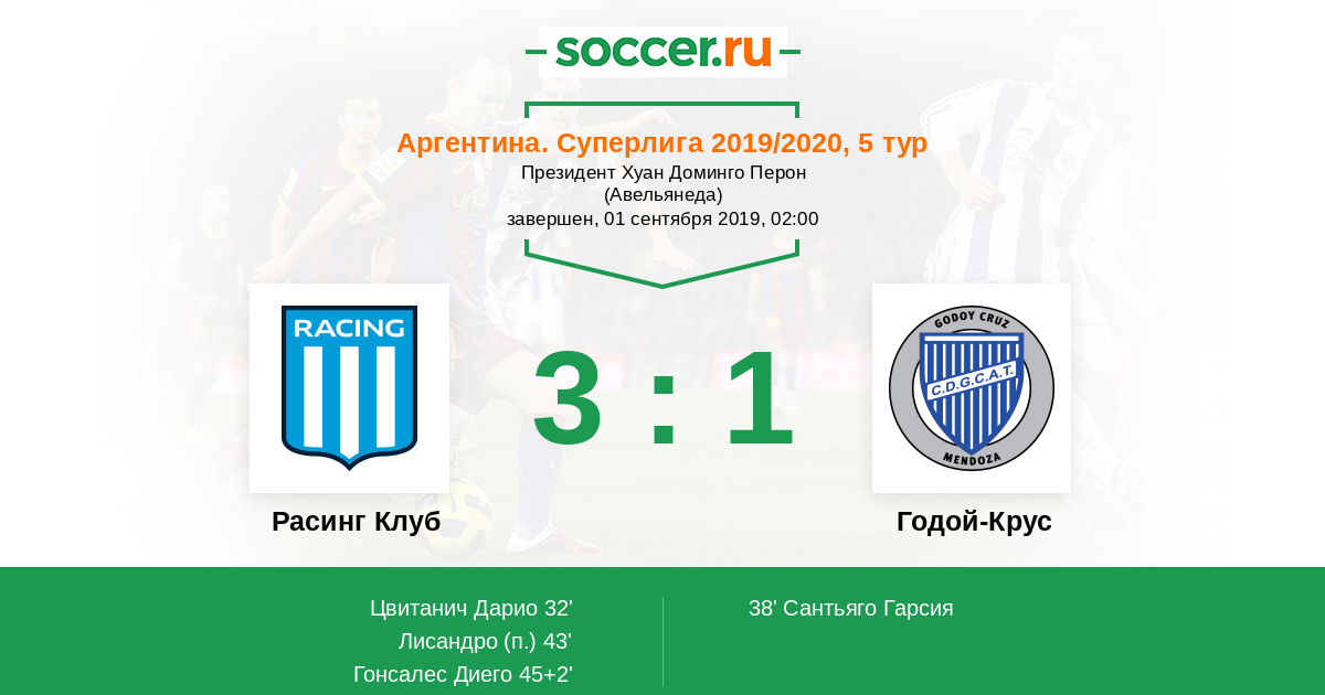 32' (1:0) Цвитанич Дарио (20) (Монтойя Вальтер (32))