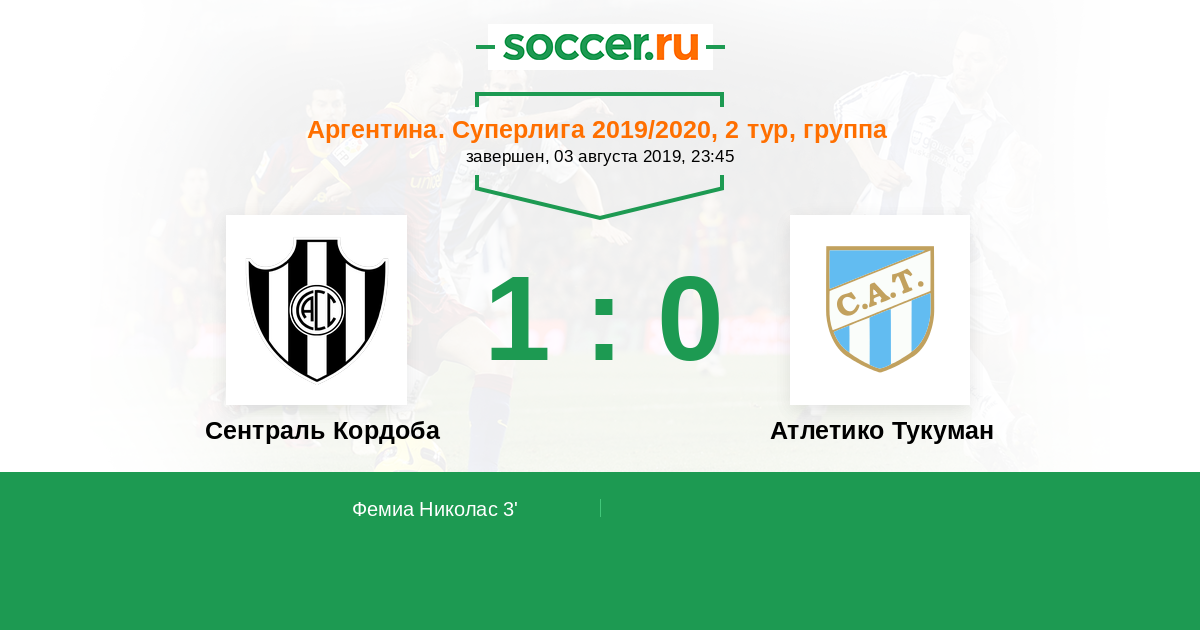 3' (1:0) Фемиа Николас (36) (Мели Сезар Марсело (8))