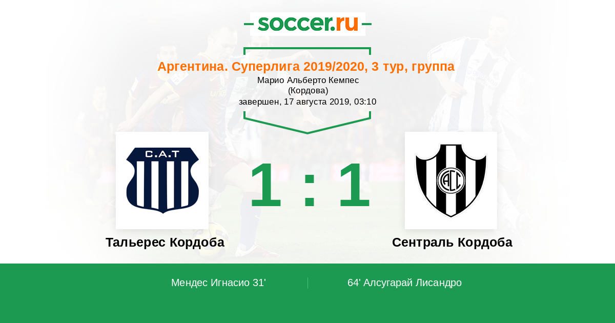 31' (1:0) Мендес Игнасио (18) (Почеттино Томас (32))
