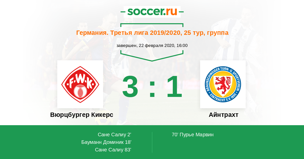 83' (3:1) Сане Салиу (11) (Кауфманн Фабио (7))