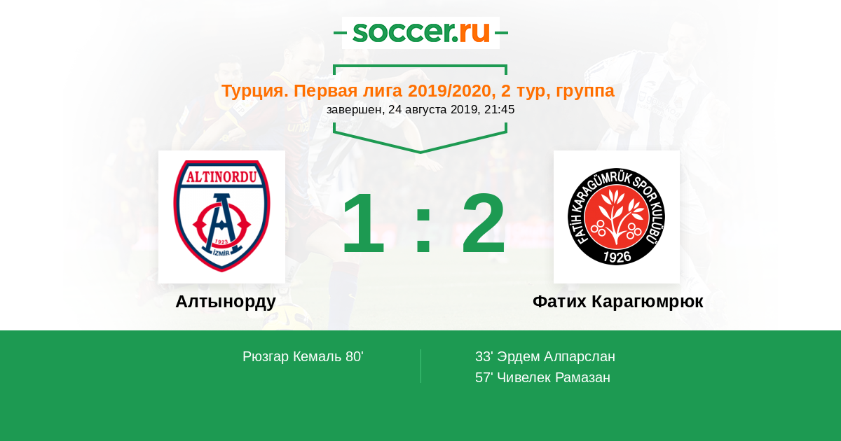33' (0:1) Эрдем Алпарслан (3)