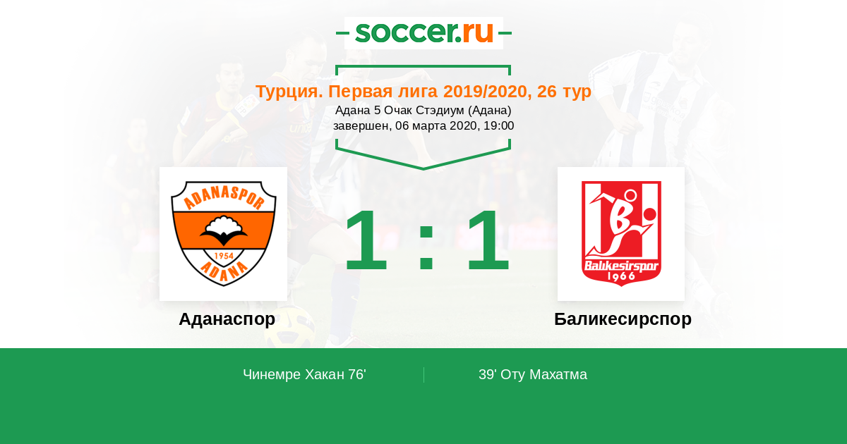 76' (1:1) Чинемре Хакан (41) (Таштемур Озкан (58))