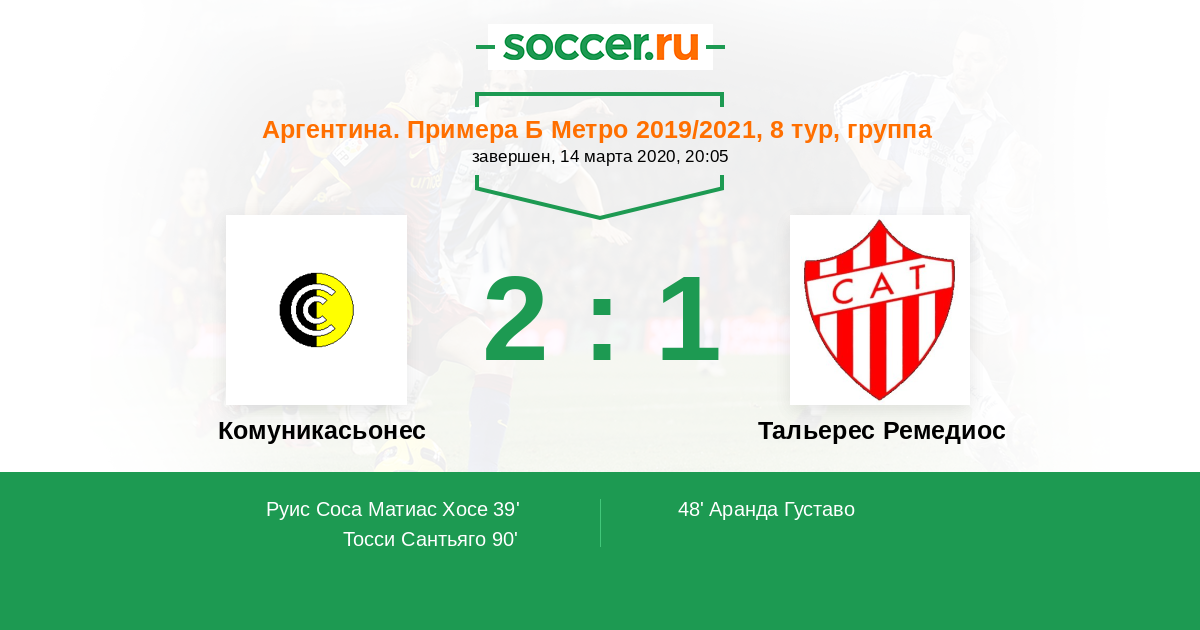 39' (1:0) Руис Соса Матиас Хосе