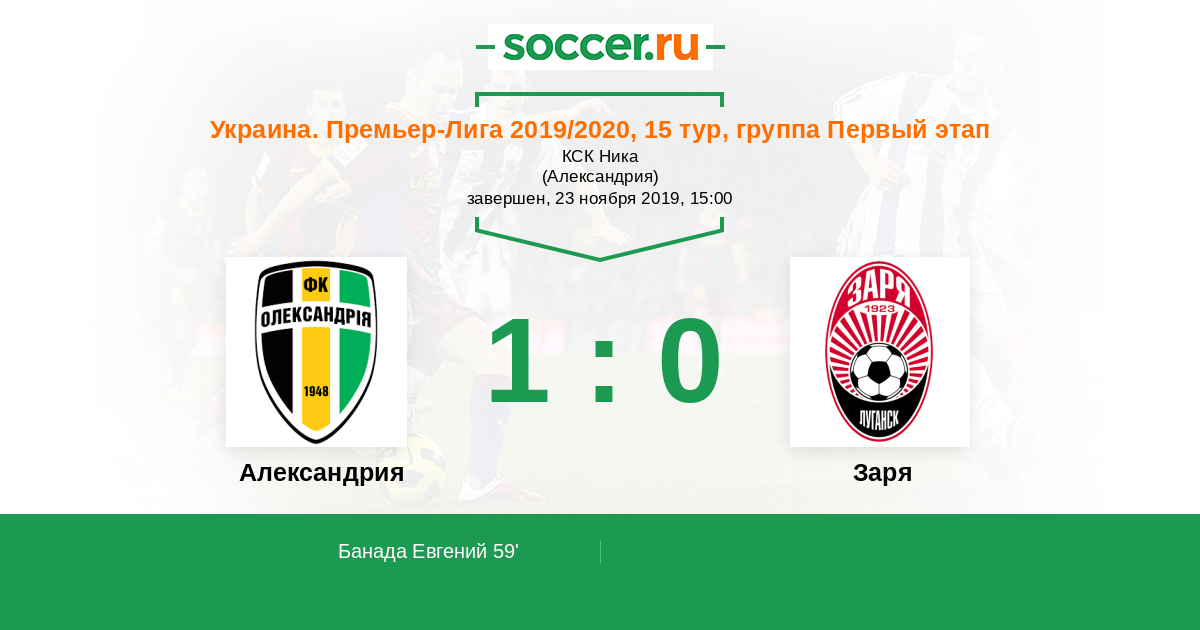 59' (1:0) Банада Евгений (44) (Безбородько Денис (9))