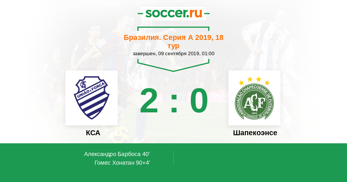 40' (1:0) Александро Барбоса (99) (Гомес Хонатан (29))