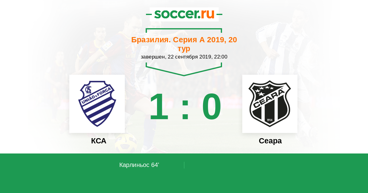 64' (1:0) Карлиньос (6) (Аподи (20))