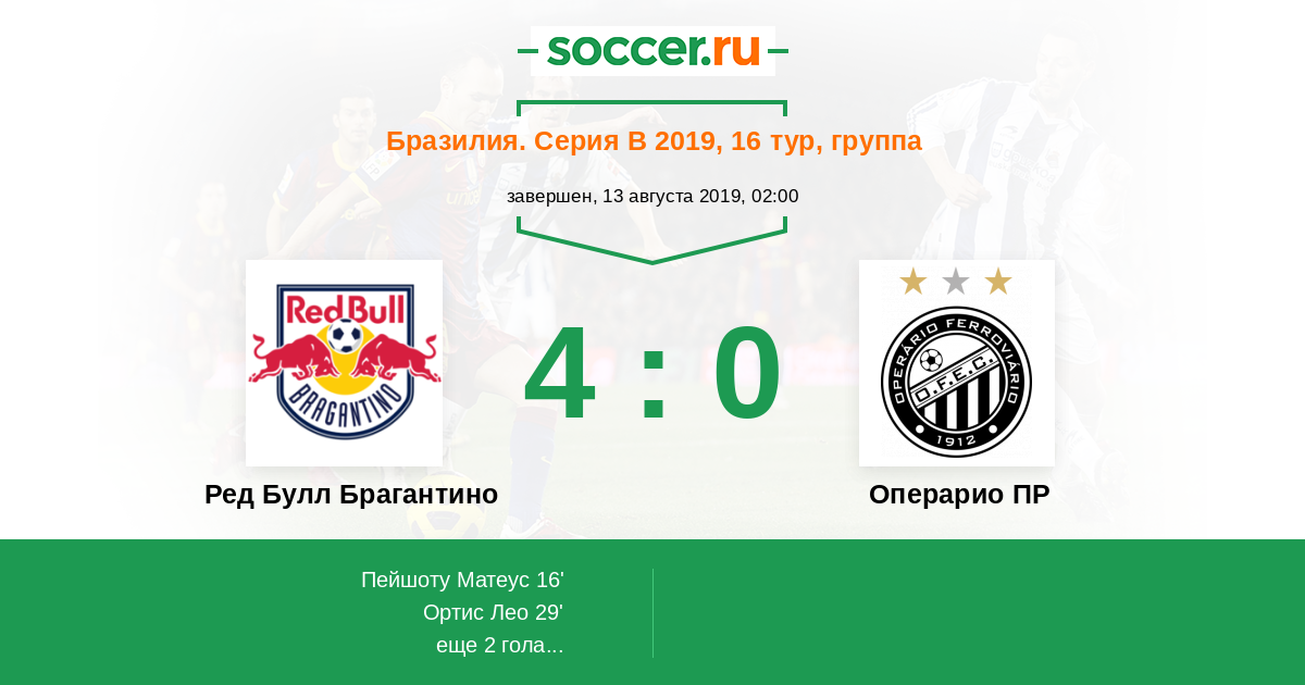 16' (1:0) Пейшоту Матеус (9) (Рикардо (37))