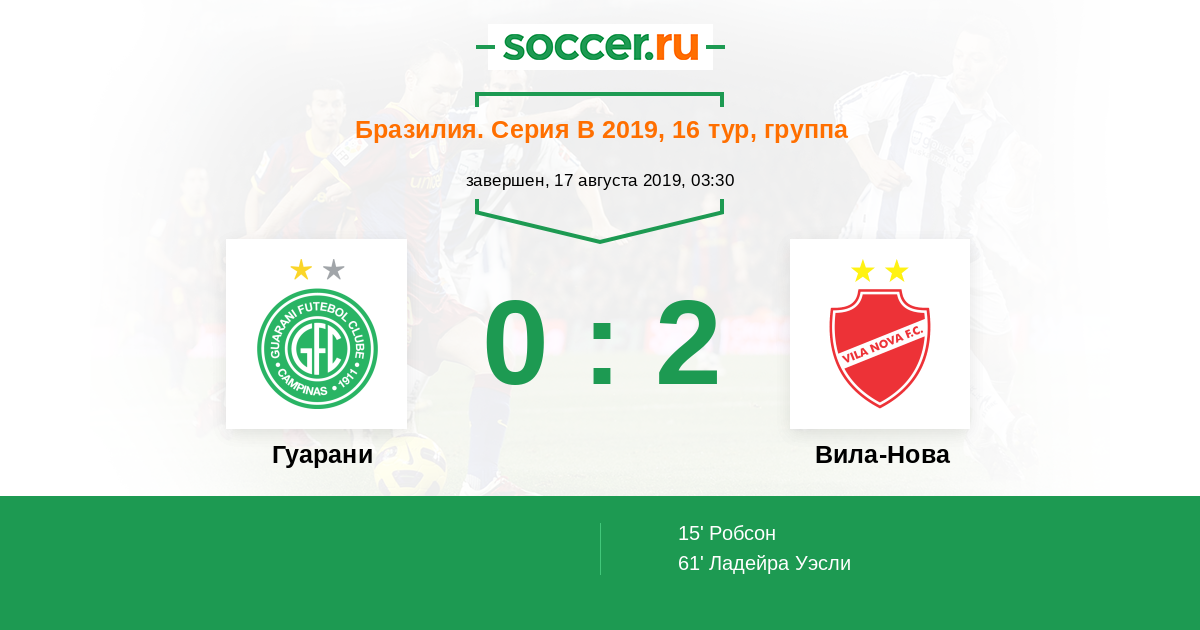 61' (0:2) Ладейра Уэсли (3) (Алан Минейро (10))