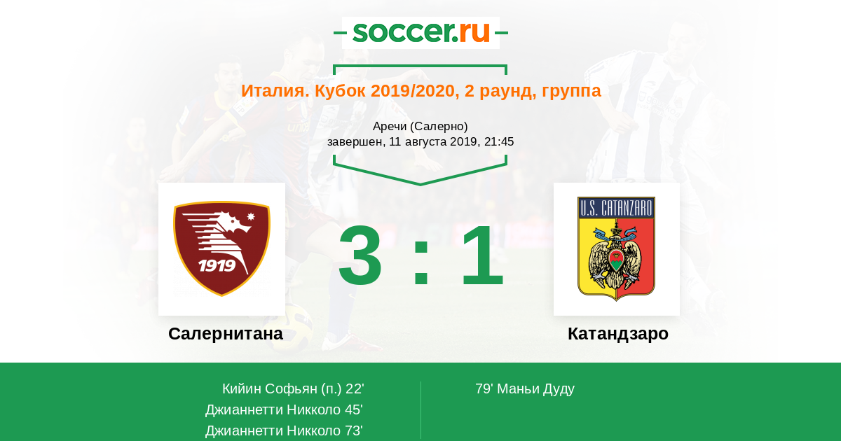 Запасные: 1 Ваннукки Джанмарко, 3 Лопес Вальтер, 4 Мильорини Марко, 6 Одьер Мосес, 7 Акпа Акпро Жан-Даниэль, 9 Калайо Эмануэле, 11 Джурич Милан, 17 Чичерелли Эмануэле, 19 Каломбо Седрик, 20 Морроне Бьяджио, 26 Карилло Луиджи