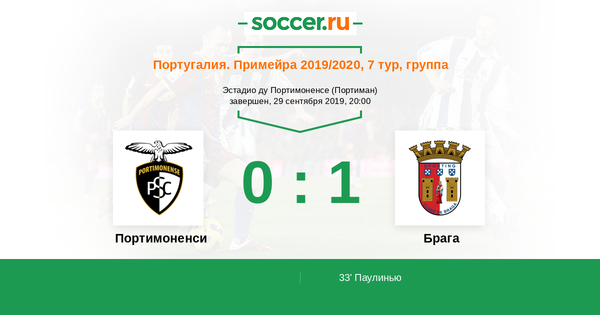 33' (0:1) Паулинью (20) (Орта Рикарду (21))