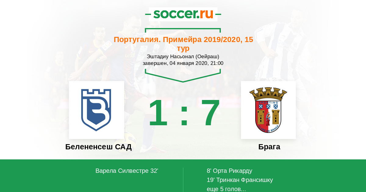 8' (0:1) Орта Рикарду (21) (Паулинью (20))