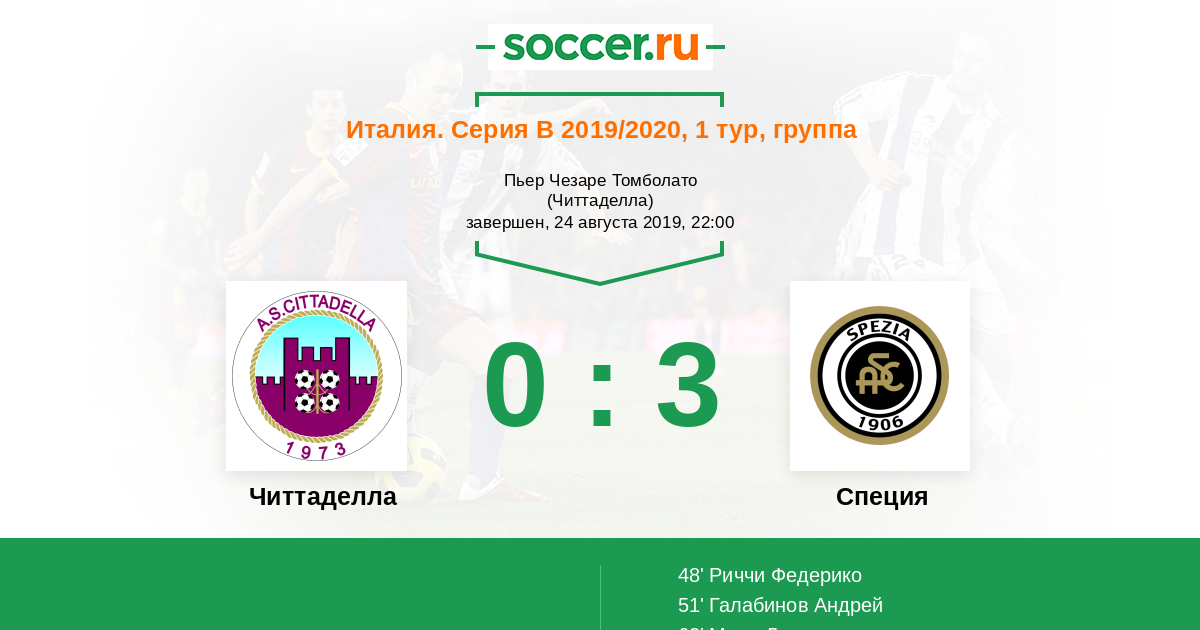 48' (0:1) Риччи Федерико (10) (Галабинов Андрей (9))