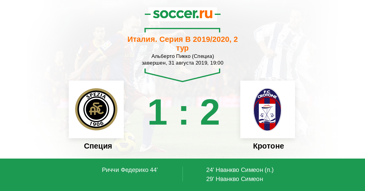 44' (1:2) Риччи Федерико (10) (Бартоломей Паоло (16))