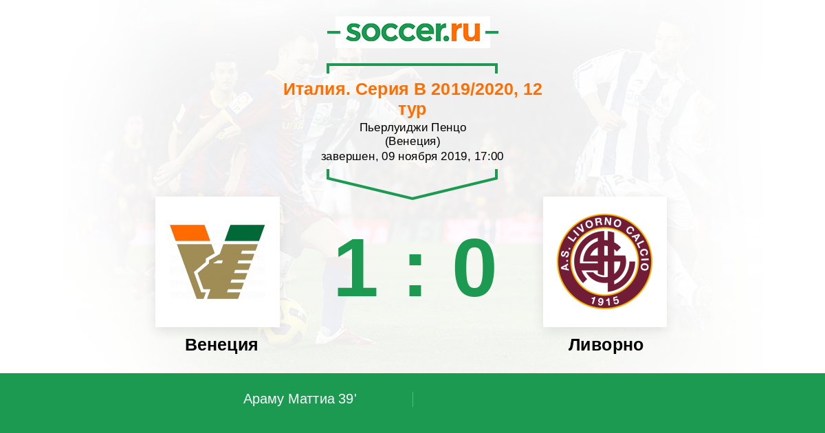39' (1:0) Араму Маттиа (10)