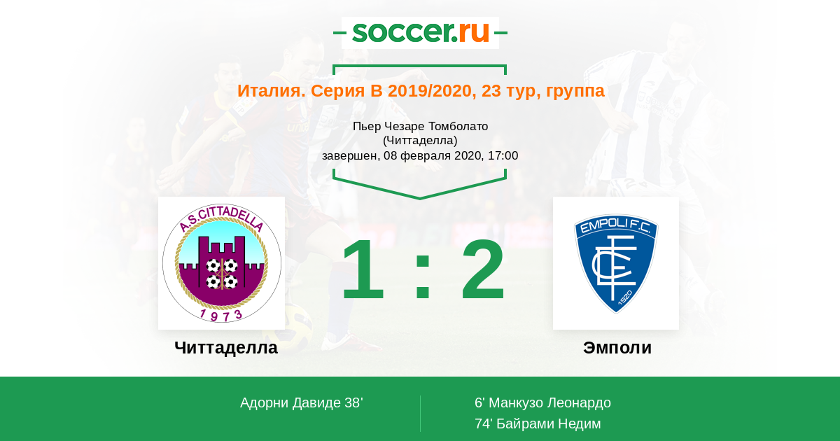 6' (0:1) Манкузо Леонардо (7) (Фьямоцци Риккардо (36))