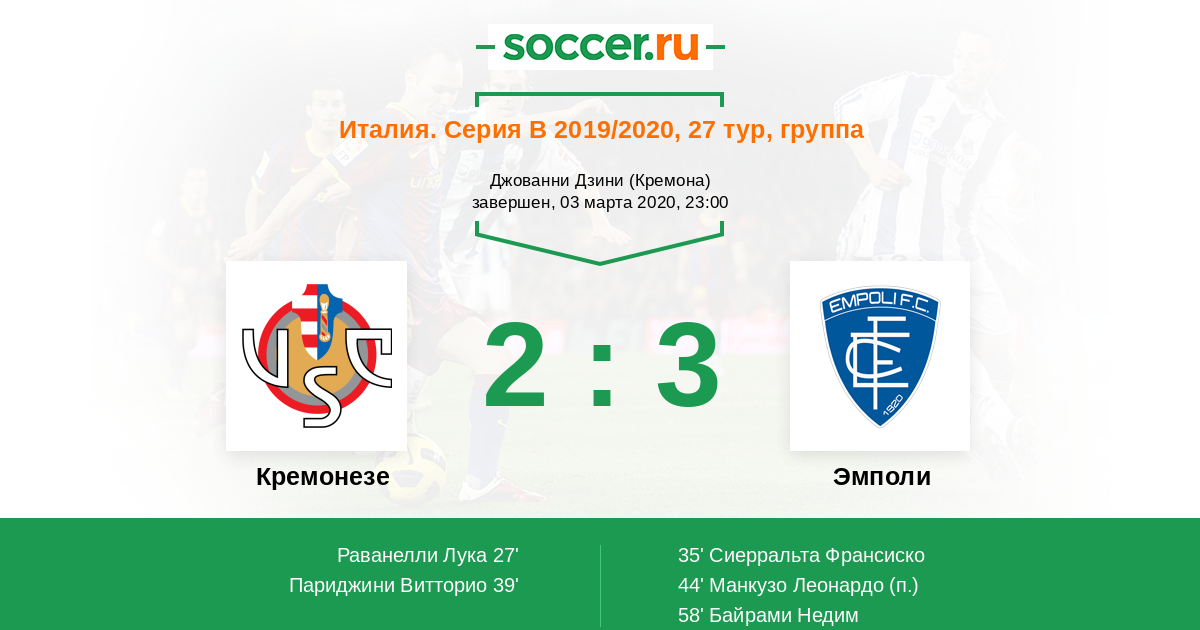 27' (1:0) Раванелли Лука (20) (Чиофани Даниэль (9))