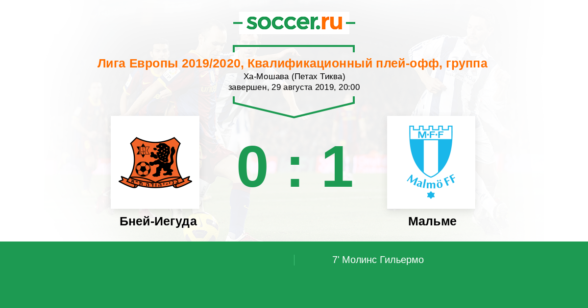 7' (0:1) Молинс Гильермо (11) (Галл Ромен (18))