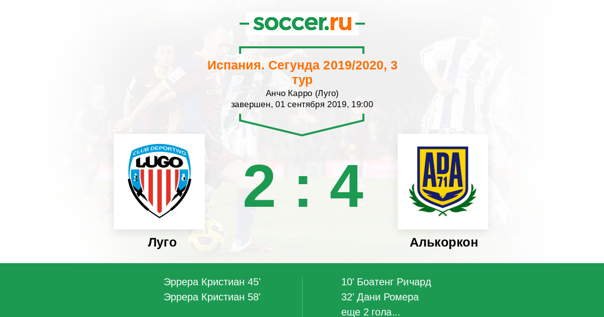 Запасные: 18 Лопес Алехандро (с 54'), 16 Кастро Карлос (с 74'), 24 Гонсалес Ириоме (с 84'), 14 Домингес Борха, 2 Леуко Серж, 28 Антон Эскобар, 13 Кантеро Андер