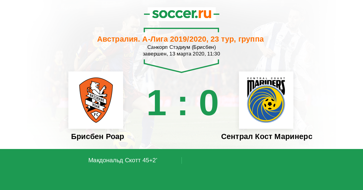 45+2' (1:0) Макдональд Скотт (77) (Инман Брадден (10))