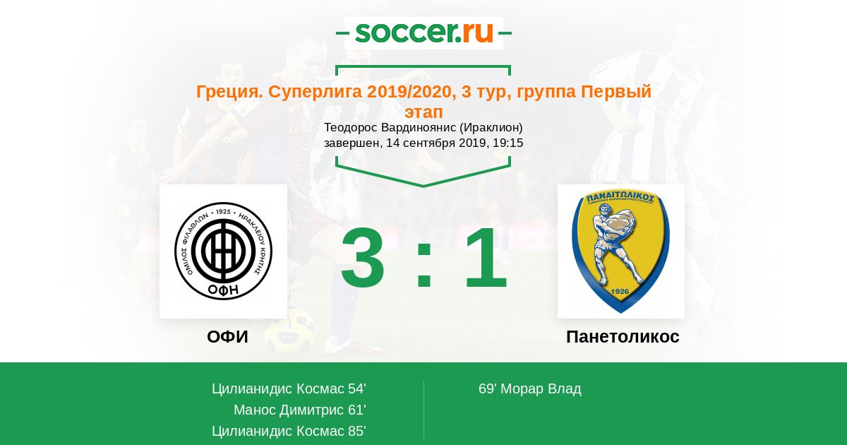 61' (2:0) Манос Димитрис (9) (Нейра Хуан (8))