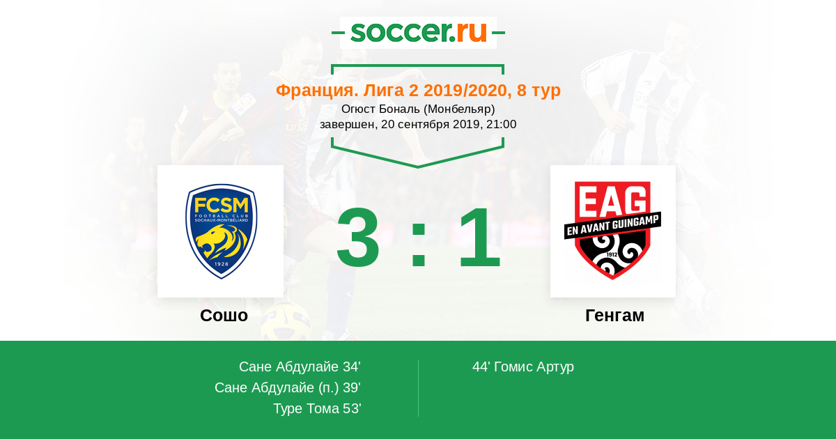 44' (2:1) Гомис Артур (13) (М'Шангама Юссуф (10))