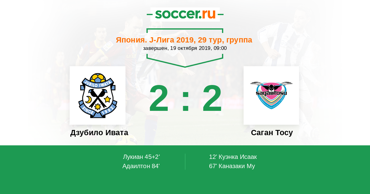 45+2' (1:1) Лукиан (39) (Оминами Такума (25))