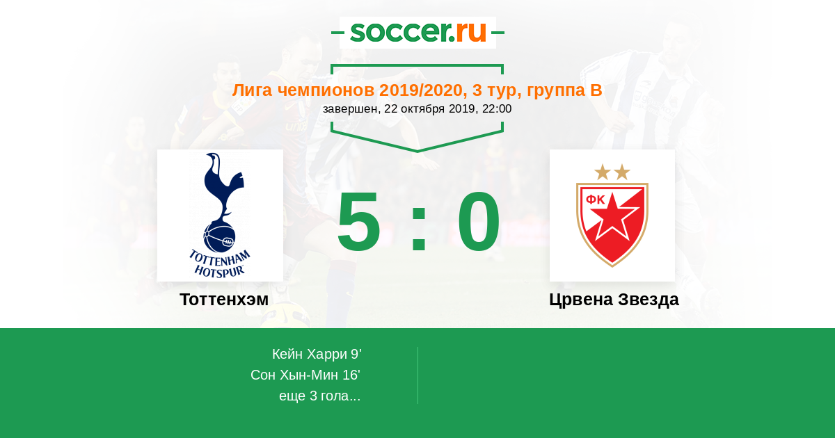 16' (2:0) Сон Хын-Мин (7) (Ламела Эрик (11))