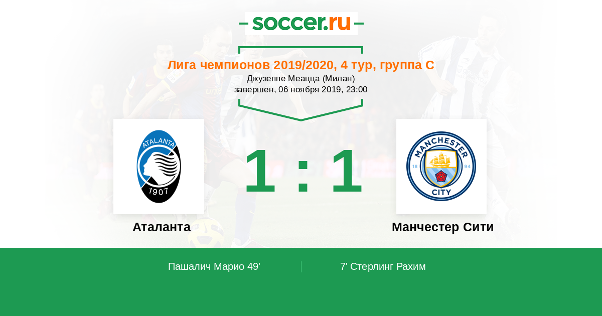 7' (0:1) Стерлинг Рахим (7) (Габриэл Жезус (9))