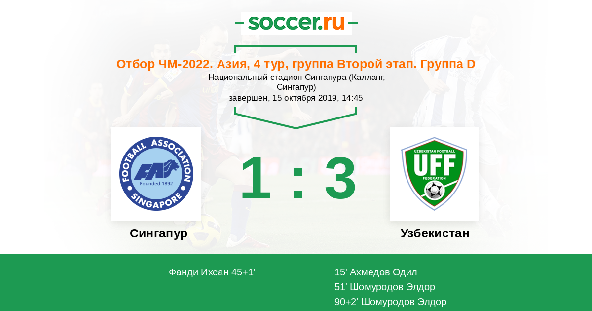 51' (1:2) Шомуродов Элдор (14) (Сайфиев Фаррух (4))