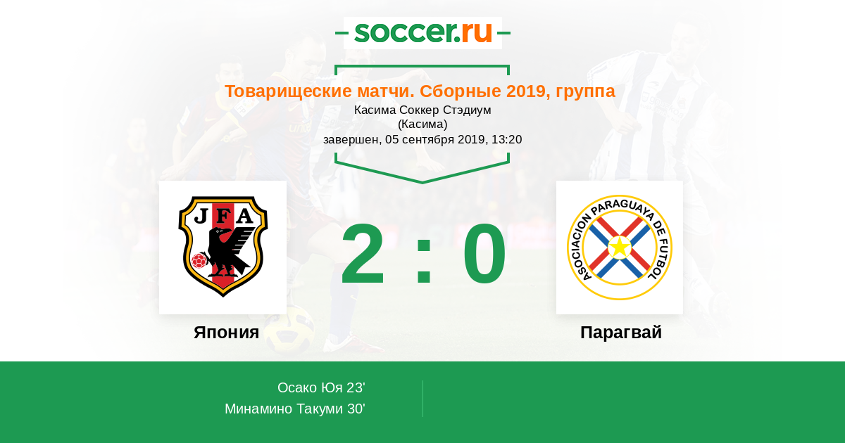 30' (2:0) Минамино Такуми (9) (Сакаи Хироки (19))