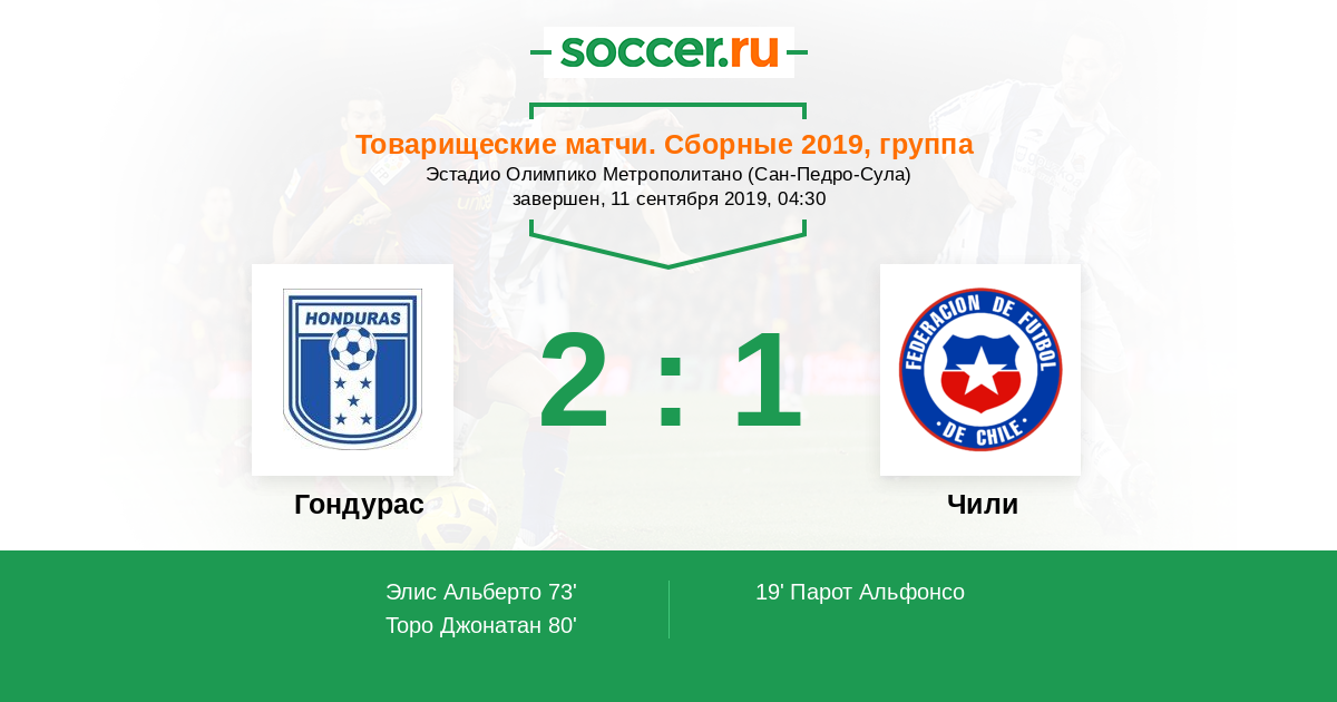 19' (0:1) Парот Альфонсо (6) (Рубио Диего (7))