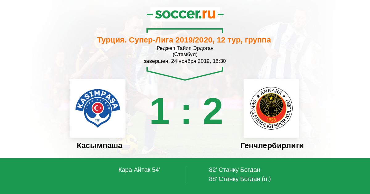 54' (1:0) Кара Айтак (35) (Хайрадинович Харис (10))