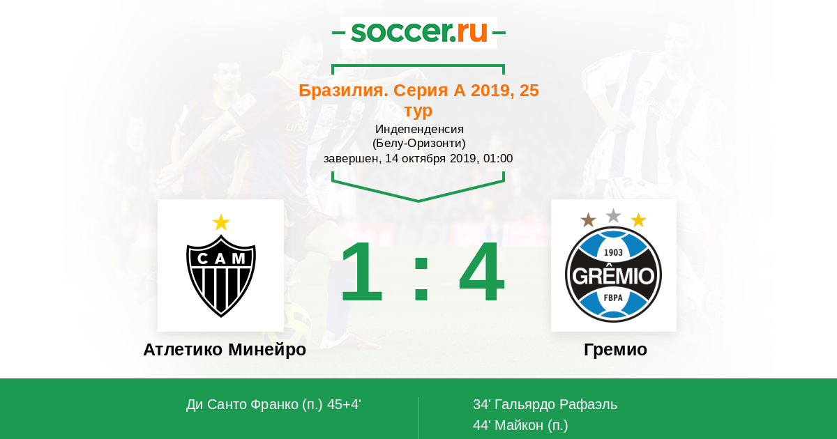 Запасные: 49 Джеуванио (с 56'), 44 Алеррандро (с 85'), 29 де Соуза Винисиус (с 85'), 14 Да Сильва Хосе Велисон, 43 Роберто Бруно, 19 Яго Майдана, 3 Силва Леонардо, 33 Фернандо, 11 Майкон, 28 Эрнандес Лукас, 20 Теранс Мигель, 9 Оливейра Рикардо