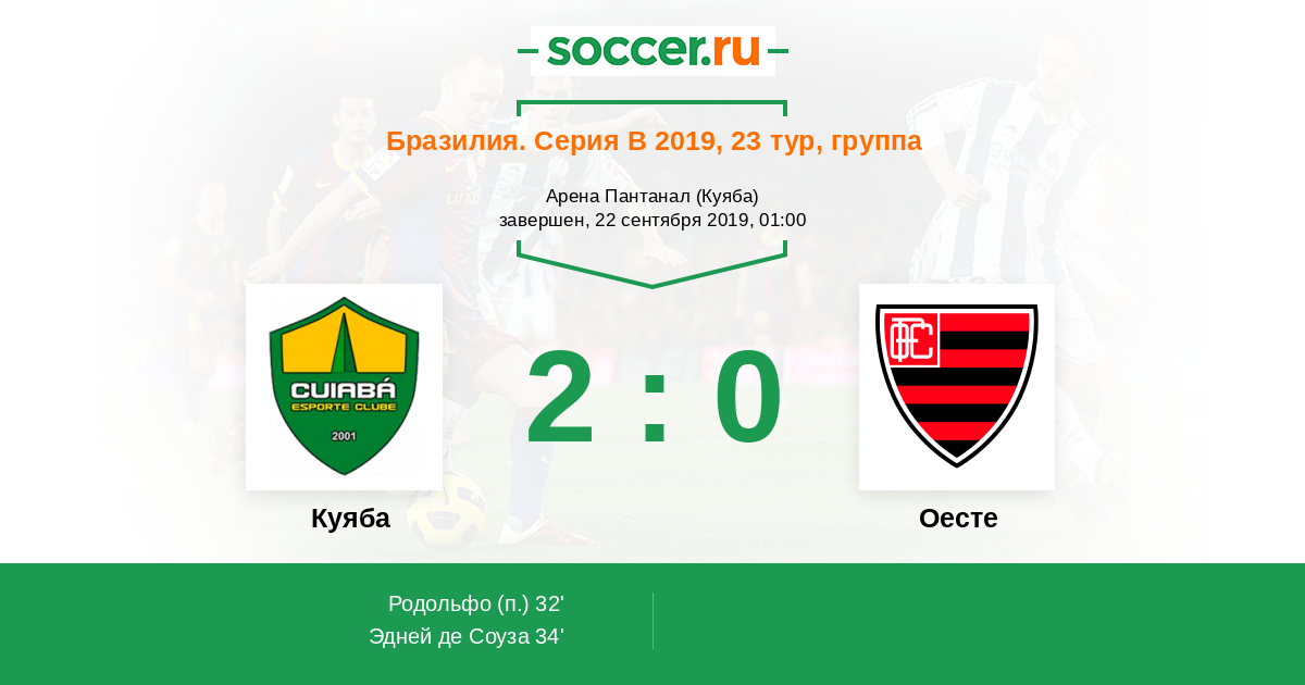 34' (2:0) Эдней де Соуза (3) (Элиас Паулиньо (6))
