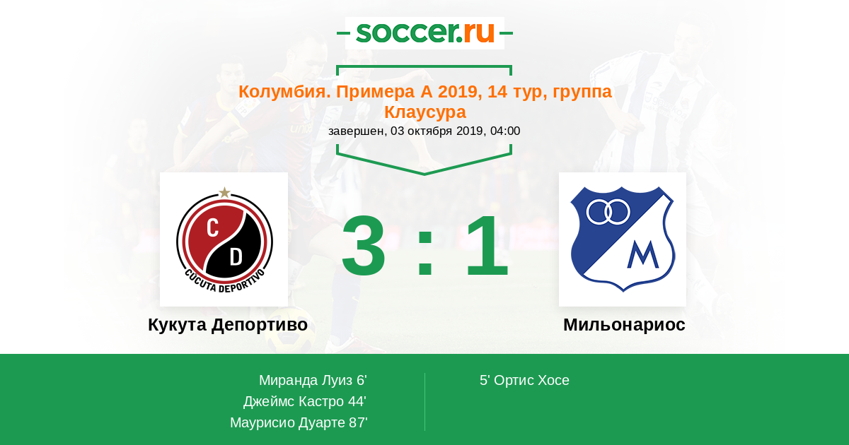Запасные: 1 да Сильва Хони, 5 Хенри Обандо, 29 Сармьенто Андрес (с 83'), 7 Диего Чика (с 81'), 17 Брайнер Гарсия, 22 Кардона Матео, 24 Кристиан Мина (с 62')