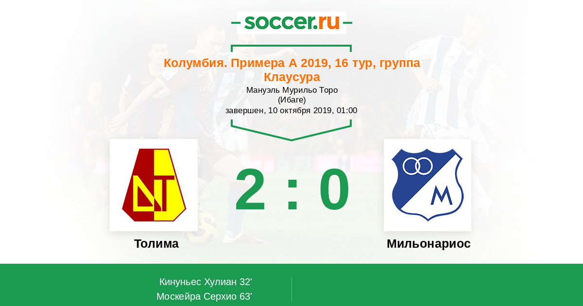 32' (1:0) Кинуньес Хулиан (3) (Яминтон Кампас (8))