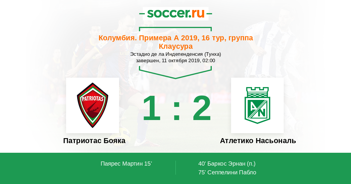 15' (1:0) Паярес Мартин (33) (Инестроза Сесар (28))
