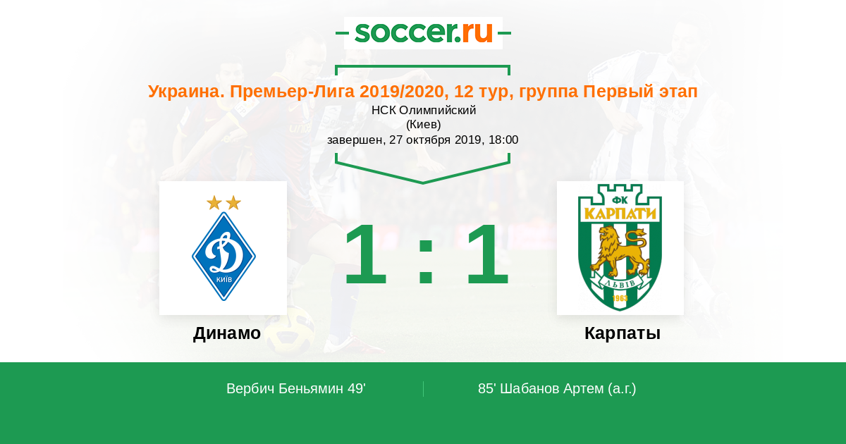 85' (1:1) Автогол Шабанов Артем (30)