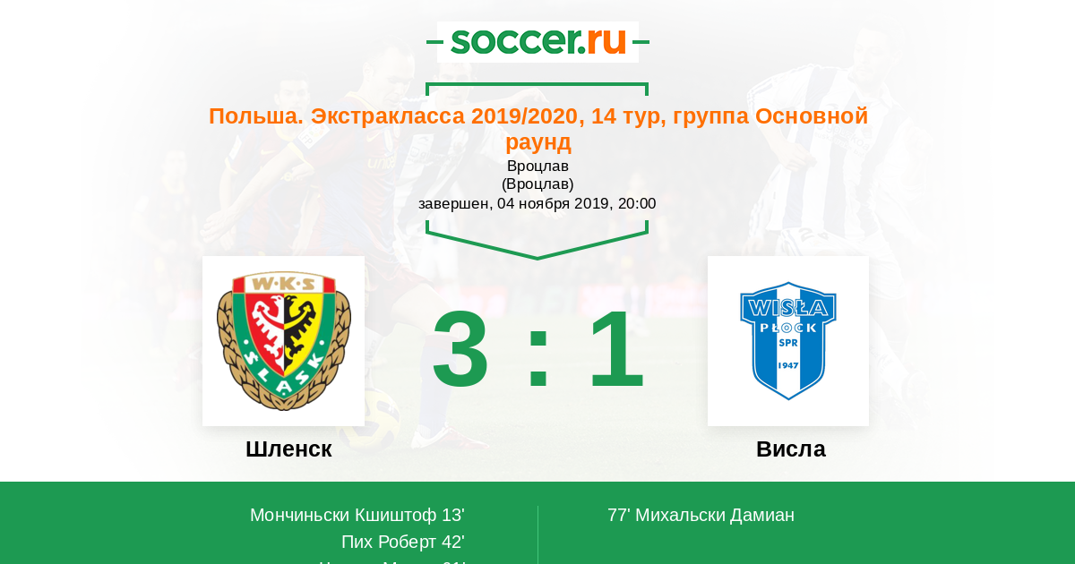 Запасные: 11 Чолевиак Матеуш (с 66'), 24 Самец-Талар Петр (с 83'), 25 Гаска Дамиан (с 89'), 18 Мусонда Лубамба, 15 Шчепан Даниэль, 23 Живулич Диего, 20 Холовния Матеуш, 17 Павелек Мариуш, 22 Кайзер Даниэль